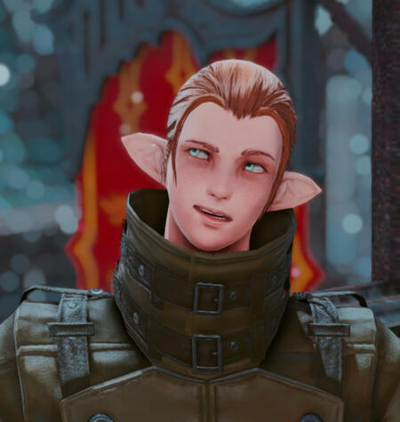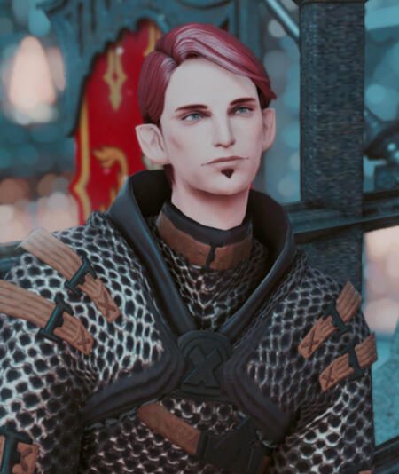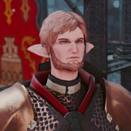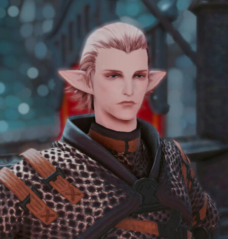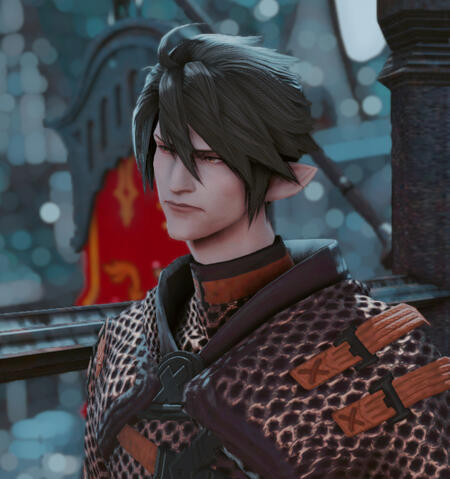 Age: 31A serious man who has been assigned as one of Lady Adaillie's bodyguards, a fact he is not very happy about. He often butts heads with others and has bit of a superiority complex. He is usually seen exchanging barbed words with those he deems lesser.When Charbonnier was wounded in Bozja, Bougonoix took his place as Lord Soleilmont and Lady Yvette's bodyguard. Lady Adaillie has given him the nickname 'Ser Grumpy' due to his unfriendly demeanor.